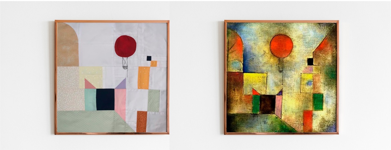 Re-reading of the painting Red Balloon by Paul Klee in patchwork